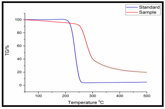 Thermogravimetric analysis (TGA) of purified PHA obtained from Bacillus licheniformis.