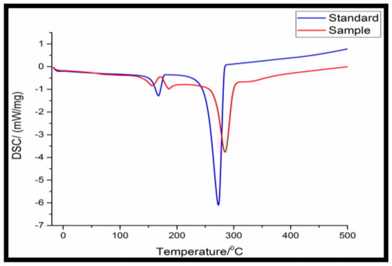The DSC analysis shown in Figure 2 indicates the melting temperature of the standard sample and the extracted polymer through sodium hypochlorite treatment. The thermal degradation was obtained at 268 °C for the obtained polymer and 250 °C of standard PHA from Sigma Aldrich.