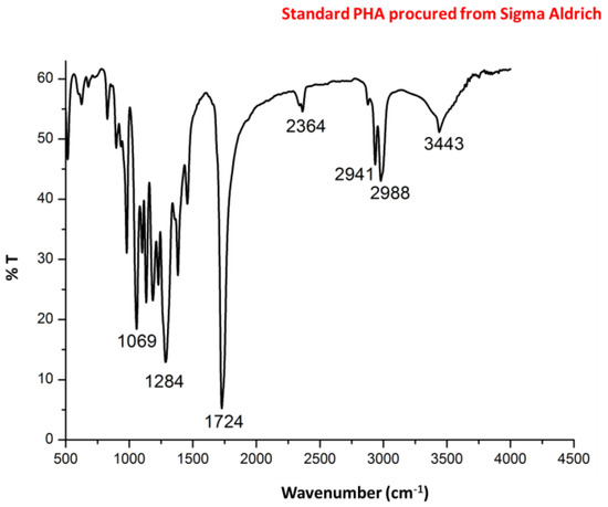 Fourier transform infrared spectroscopy (FTIR) spectra of standard PHA procured from Sigma Aldrich.