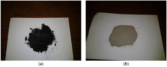 About 15 g of SCB was weighed and placed on a sample holder and mounted to the inner cylinder of the tube-type vessel. A connection between the vessel and the inlet N2 gas supply system as well as a condenser was established. N2 gas was blown via the tube-type vessel at a flow rate of 5 L·min−1 to purge the system of any oxygen in the system and eliminate the presence of volatiles in the tube. The N2 gas flow rate was then reduced to about 0.5 L·min−1 to prevent the volatiles and gases from completely escaping into the atmosphere as some of these were collected for analyses after the experiment; however, the main function of the N2 supplied to the torrefaction process, since it condenses and freezes at a particular temperature, was to prevent the furnace from overheating. A preheating of the furnace to a set temperature was undertaken before the tubular reactor containing the sample was placed inside the furnace for the torrefaction process to take place. As the torrefaction experiment progressed in the furnace, the sample heating rate in the furnace was pre-set to 10 °C·min−1, which is characteristic of gasification process heating rate linked to fixed bed gasifiers. The experiment was conducted at a maximum temperature of 300 °C for an hour, which was counted from the time the experiment commenced at room temperature to the time the sample temperature inside the furnace attained 300 °C. Sample residence time of 5 min was maintained in the vessel to allow for rapid reaction and cooling of the sample while still in the furnace, which eliminates the possibility of partial combustion of the sample during its cooling under air atmosphere. This residence time was made relatively short to prevent severe decomposition of the sample while still in the vessel. After the torrefaction experiment and as the residence time elapsed, the entire vessel was withdrawn from the furnace and allowed to cool in the ambient air. The solid product (sample), referred to as the torrefied material was also removed from the vessel chamber, cooled and weighed to determine the solid yield. The solid sample was placed in airtight vials and preserved in a desiccator for further analyses. The volatiles produced in the process were collected and cooled in the condenser, while the non-condensable gases were collected at 15-min intervals in small gas sampling bags for analysis. Figure 2a,b show the torrefied and untorrefied bagasse.