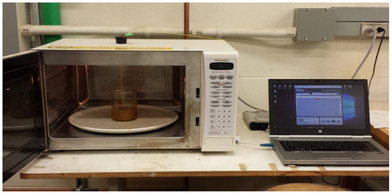 Microwave (MW) treatments were carried out using a domestic microwave oven (Model NNC980W, Panasonic Canada Ltd., Mississauga, ON, Canada) with an operating frequency of 2450 MHZ and variable power from 220 to 1100 W. The microwave heating temperature data recording and acquisition in the experiment was done using Qualitrol Corporation software and the Nomad Fiber Optic Thermometer (Model NMD228A, Quebec City, QC, Canada). The data logging was one data point for every 5 s. Twenty grams of ground biomass sample (canola straw and oat hull) were immersed in 180 g of various alkaline solutions of 0%, 0.75% and 1.5% (w/v) NaOH and 0%, 0.75% and 1.5% (w/v) KOH. The mixture was placed in a 600-mL beaker and the biomass mixture was allowed to absorb the alkaline solution for a period of 30 to 45 min. The mixture was placed at the centre of a rotating ceramic plate inside the microwave oven for treatment at a fixed power of 713 W [23]. The temperature probe was inserted through a hole closed with a cork on top of the microwave oven and inserted halfway into the beaker containing the sample. The mixture was exposed to three levels of residence time 6, 12 and 18 min, and the temperature reading was recorded accordingly. The process was done in five replicates for each sample. Figure 2 shows the experimental setup. At every interval of 3 min, the microwave was stopped, and the beaker taken out and stirred for a few seconds. This is to ensure uniform heating within the reactor. After the treatments, the moisture content of each sample was determined. The samples were dried and maintained at an appropriate moisture level of 12% (w.b.) using a forced-air convection dryer set at 42 °C [41] and stored in a Ziploc bag.