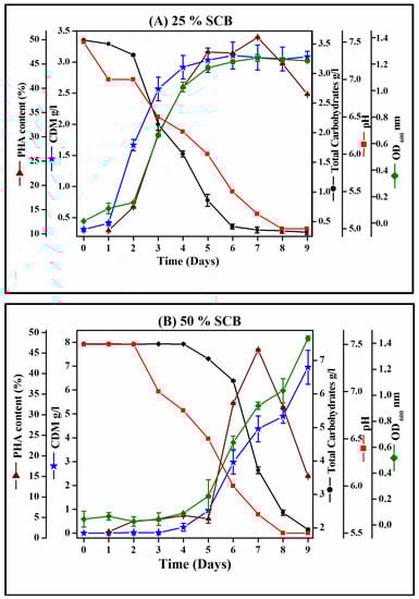 3.2. Screening for PHA using SCB Hydrolysate