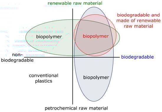 The term “biopolymer” or “bioplastic” is not yet uniformly defined. Common definitions of the term “biopolymer” also include biodegradable plastics from fossil fuels and non-biodegradable plastics from renewable resources as seen in Figure 1. To eliminate the problems accompanied by polymer production from crude oil a more stringent definition is introduced by the authors: