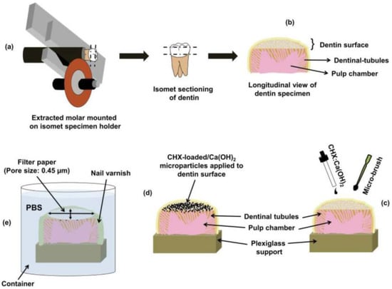 - Cerda-Cristerna, B.I.; Breceda-Leija, A.; Méndez-González, V.; Chavarría-Bolaños, D.; Flores-Reyes, H.; Garrocho-Rangel, A.; Komabayashi, T.; Wadajkar, A.S.; Pozos-Guillén, A.J. Sustained release of calcium hydroxide from poly (dl-lactide-co-glycolide) acid microspheres for apexification. Odontology 2015, 104, 318–323. [Google Scholar] [CrossRef] [PubMed]