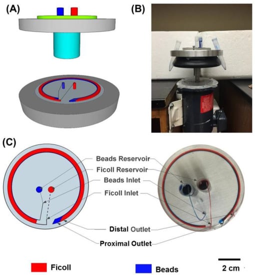 - Moen, S.T.; Hatcher, C.L.; Singh, A.K. A centrifugal microfluidic platform that separates whole blood samples into multiple removable fractions due to several discrete but continuous density gradient sections. PLoS ONE 2016, 11, e0153137. [Google Scholar] [CrossRef] [PubMed]