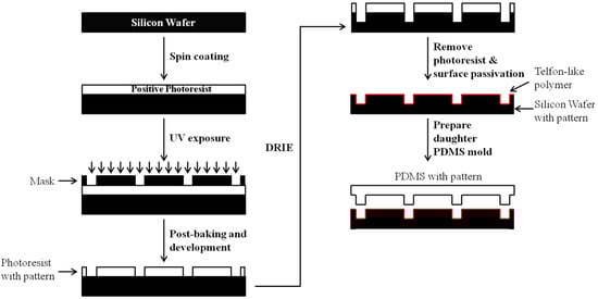 - Chan-Park, M.B.; Yan, Y.H.; Neo, W.K.; Zhou, W.X.; Zhang, J.; Yue, C.Y. Fabrication of high aspect ratio poly(ethylene glycol)-containing microstructures by UV embossing. Langmuir 2003, 19, 4371–4380. [Google Scholar] [CrossRef]
