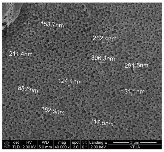 The surface morphology of the nanoparticles prepared was examined using Scanning Electron Microscopy (SEM). The analysis was performed on a NanoSEM 230 (FEI Company, Hillsboro, OR, USA) equipped with an Everhart-Thornley Detector (ETD) and a Through Lens Detector (TLD). In order to secure conductivity of the surface for clear imaging, gold sputtering was applied with a nominal thickness of 7 nm using an EMS 550X Sputter Coater (Hatfield, PA, USA).