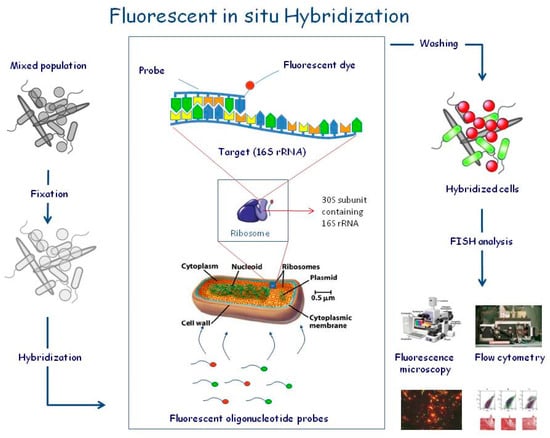 - Frickmann, H.; Zautner, A.E.; Moter, A.; Kikhney, J.; Hagen, R.M.; Stender, H.; Poppert, S. Fluorescence in situ hybridization (FISH) in the microbiological diagnostic routine laboratory: A review. Crit. Rev. Microbiol. 2017, 43, 263–293. [Google Scholar] [CrossRef] [PubMed]
