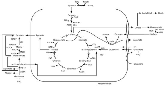 Citrate cycle, which represents the entry point into the energy metabolism, adapted from [].