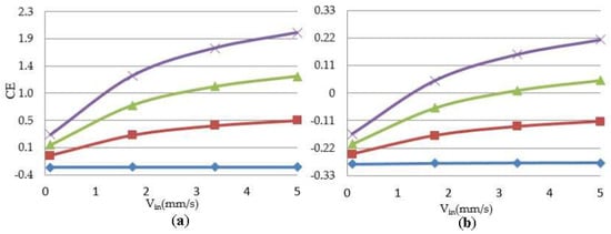 The simulation results indicate the critical effect of fluid velocity on the cell culture efficiency, particularly in the case of high cell densities. Negative culture efficiency is interpreted as losing part of the cell population with time, under the specified operating conditions. The sensitivity of the cell culture to the inlet velocity profile is predicted to decrease at higher velocities. This behavior is explained by the multi-facial effect of shear stress on the cell growth rate (see Equation (8)). On the other hand, the sensitivity of the process to the flow velocity is a function of cell population. The populated cell culture shows higher resistance to the penetration of medium into the biomass volume, which overwhelms the intense influence of velocity on the cell culture.