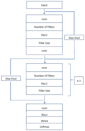 Proposed Algorithm of Convolution NN. Four convolutional layers were used. In addition, there is one output layer with a softmax layer to hold the output of the NN.