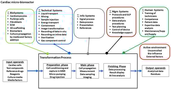Hubka-Eder map showing the functional systems and subsystems that could be involved in a heart-on-a-chip MBR for purposes indicated in Table 5.