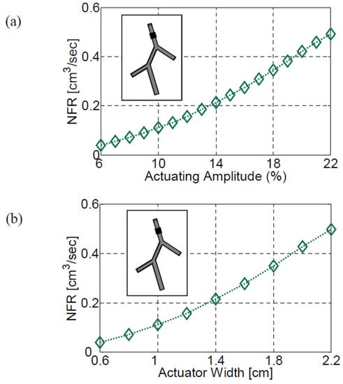 - Rosenfeld, M.; Avrahami, I. Net flow rate generation by a multi-pincher impedance pump. Comput. Fluids 2010, 39, 1634–1643. [Google Scholar] [CrossRef]