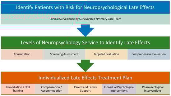 - Nathan, P.C.; Patel, S.K.; Dilley, K.; Goldsby, R.; Harvey, J.; Jacobsen, C.; Kadan-Lottick, N.; McKinley, K.; Millham, A.K.; Moore, I.; et al. Guidelines for identification of, advocacy for, and intervention in neurocognitive problems in survivors of childhood cancer: A report from the Children’s Oncology Group. Arch. Pediatr. Adolesc. Med. 2007, 161, 798–806. [Google Scholar] [CrossRef] [PubMed]