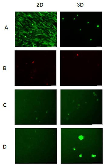 - Gómez-Lechón, M.J.; Jover, R.; Donato, T.; Ponsoda, X.; Rodriguez, C.; Stenzel, K.G.; Klocke, R.; Paul, D.; Guillén, I.; Bort, R.; Castell, J.V. Long-term expression of differentiated functions in hepatocytes cultured in three-dimensional collagen matrix. J. Cell Physiol. 1998, 177, 553–562. [Google Scholar]
