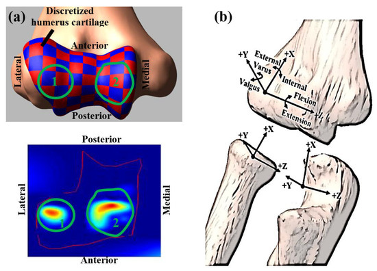 - Rahman, M.; Cil, A.; Stylianou, A.P. Prediction of elbow joint contact mechanics in the multibody framework. Med. Eng. Phys. 2016, 38, 257–266. [Google Scholar] [CrossRef] [PubMed]