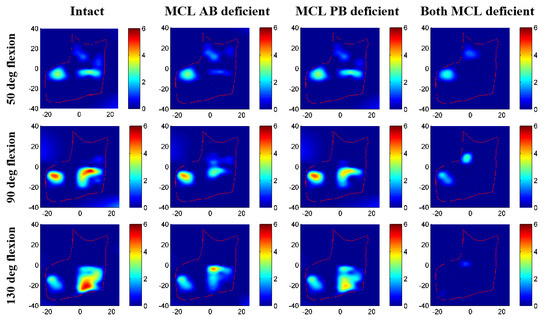 Simulating medial collateral ligament deficiency in a computer model would be immensely valuable for surgical planning and refinement of rehabilitation regimens. Such models would allow us to examine efficient ligament reconstruction techniques by pre-operative assessment and to investigate better rehabilitation post-operative protocols. Literature reviews reveal that computer models have been employed effectively to measure articular cartilage contact pressure distribution, examine muscle and ligament function, investigate joint stability, and injury mechanisms [6,7,8,9,10,11,12,13,14,15,16,17,18]. Computer models provide great flexibility in analyzing different clinical scenarios and are capable of measuring and calculating important parameters that are difficult or sometimes impossible to capture experimentally such as ligament force and cartilage contact pressure.