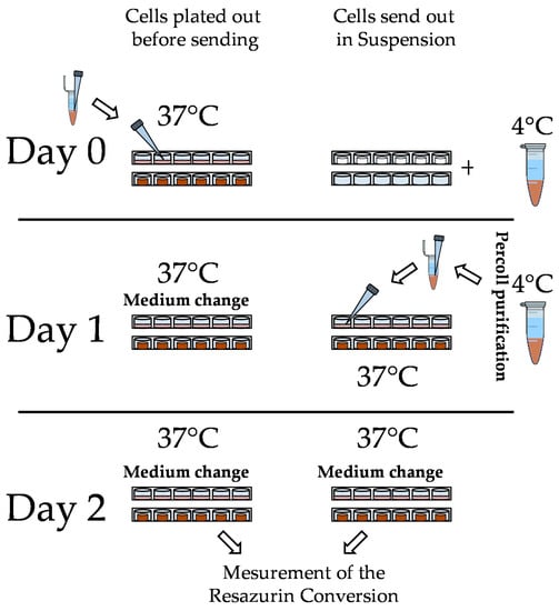 | Amount of Living Cells before Shipment (in mio) | Viability before Shipment | Amount of Living Cells after Percoll Purification (in mio) | Viability after Percoll | |
