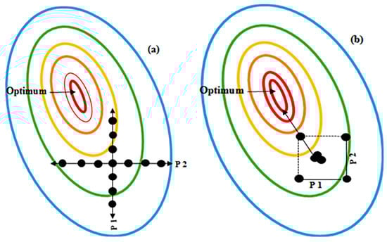 DoE advances the traditional OFAT approach; OFAT fails to account for variables interacting with and influencing, each other and also requires significantly more experiments to converge on an optimum; all of which increases cost and time []. Figure 2 provides a brief comparative description between DoE and OFAT.