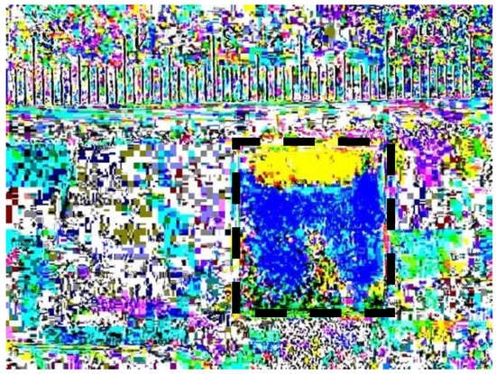 Better definition of the flow pattern after 15 min is obtained when, as suggested by Knox et al. [], the first image is inverted and then added to the last frame of the time-lapse movie (Figure 5). There appears to be phase mixing at the bottom of the gauze pad (green color) and in regions between the yellow and blue contours (green color).
