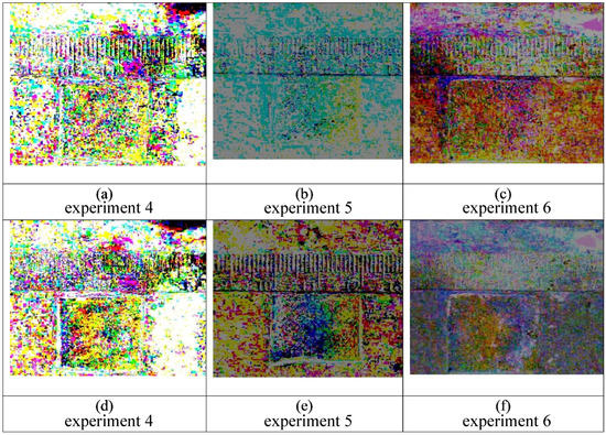 Triplicate experiments (4–6) are shown in the panels above for initial application of 100% water with yellow dye, followed by 100% water with blue dye. The first frame is subtracted from the final frame for each of the three separate experiments with the following conditions: Images (a–c) do not show distinct color variations in the pad after 5 min. Similarly, after 15 min there is no noticeable pattern in images (d–f).