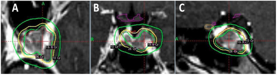 - Niranjan, A.; Kano, H.; Mathieu, D.; Kondziolka, D.; Flickinger, J.C.; Lunsford, L.D. Radiosurgery for craniopharyngioma. Int. J. Radiat. Oncol. Biol. Phys. 2010, 78, 64–71. [Google Scholar] [CrossRef] [PubMed]
