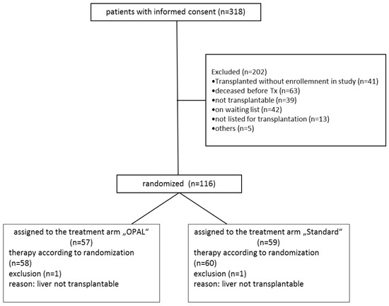 When found to be suitable for transplantation randomization was initiated after verification of all inclusion and exclusion criteria. Randomization was technically realized by a web-interface organized by the center for clinical trials Essen with 1:1 randomization ratio as per computer-generated randomization schedule. Variable block sizes were used with patient level stratification for Model for End-Stage Liver Disease (MELD) score (3 groups: <20, 20–30, and >30).