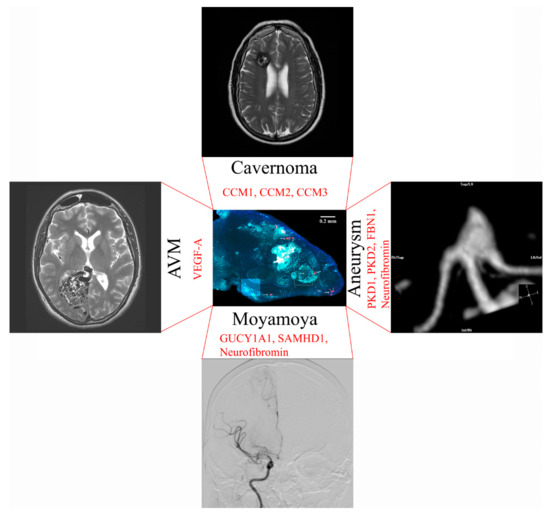 - Thomas, J.M.; Surendran, S.; Abraham, M.; Rajavelu, A.; Kartha, C.C. Genetic and epigenetic mechanisms in the development of arteriovenous malformations in the brain. Clin. Epigenet. 2016, 8, 412. [Google Scholar] [CrossRef]