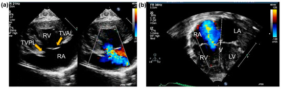 - Takahashi, K.; Inage, A.; Rebeyka, I.M.; Ross, D.B.; Thompson, R.B.; Mackie, A.S.; Smallhorn, J.F. Real-time 3-dimensional echocardiography provides new insight into mechanisms of tricuspid valve regurgitation in patients with hypoplastic left heart syndrome. Circulation 2009, 120, 1091. [Google Scholar] [CrossRef] [PubMed]