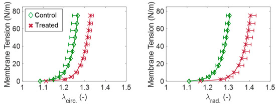 In addition, the above-mentioned anisotropic, non-linear nature of the TV leaflet’s mechanical response stems from the gradual recruitment of crimped collagen fibers preferentially oriented in the circumferential direction. Since the crimped collagen fibers do not contribute to the mechanical behavior, the tissue’s mechanical response initially has a long toe-region in which there are large deformations corresponding to low stresses. As the collagen fibers are recruited and straightened, the tissue’s mechanical response stiffens, resulting in the distinct non-linearity. The orientation, recruitment, and re-orientation of the collagen and elastin fibers throughout the TV leaflet tissue under loading has been determined by imaging techniques [126,127,128]. For instance, Alavi et al. (2015) [129] used second harmonic imaging techniques to understand the distribution and orientation of collagen fibers during uniaxial and biaxial loading. Two key findings from their study are: (i) collagen fibers in the superficial layers were aligned in between the radial and circumferential directions when the TV leaflets were in their relaxed state, whereas collagen fibers were oriented in the circumferential direction in deeper layers; (ii) the collagen fibers were reoriented according to the applied biaxial loading.