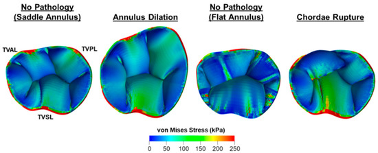 - Stevanella, M.; Votta, E.; Lemma, M.; Antona, C.; Redaelli, A. Finite element modelling of the tricuspid valve: A preliminary study. Med. Eng. Phys. 2010, 32, 1213–1223. [Google Scholar] [CrossRef]