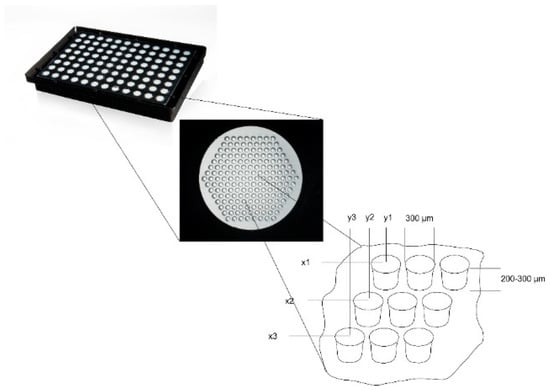Figure 1, 300MICRONS GmbH, Karlsruhe, Germany) are made of polystyrene with a polycarbonate film forming the bottom of the plate that contains the microcavities. Prior to use, the plates were hydrophilized with a decreasing isopropanol series (100%, 70%, 50%, 30%, H