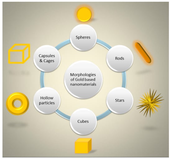 Schematic representation of the main morphologies of gold-based nanomaterials used in biomedical applications.