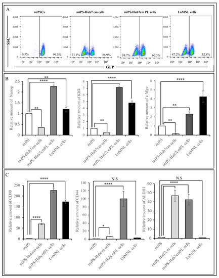 3.1.2. Characterization of miPS-Huh7cm Cells, Primary Tumor Derived Cells and Lung Metastatic Cells