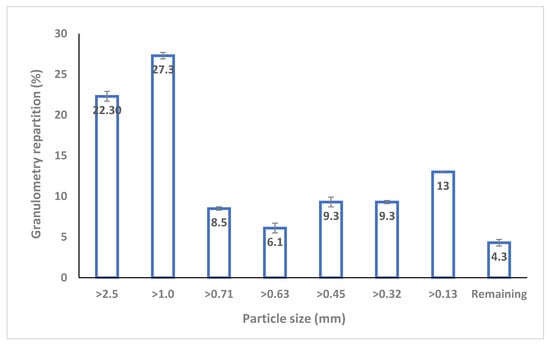 Granulometry repartition (in % of dry biomass) of the raw solid digestate.