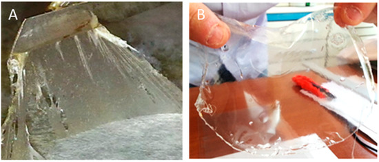 Crude PHA film (A) and transparent PHA film obtained after floating a toluene solution on a water surface (B) achieved from Pseudomonas mediterranea 9.1 using refined glycerol as carbon source (Figure 1B courtesy of Copyright Elsevier from [13]).