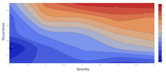 Within Figure 6, it is shown that the severity and occurrence have a different effect on the CQA reduction. This observation shows the importance of a reasonable PP assessment for each factor individually. We cannot generally assume that an O estimation of five always results in a critical process parameter while the S is two, or vice versa. We have to individually assess each PP by its CQA reduction effect and not if just one factor is at maximum.