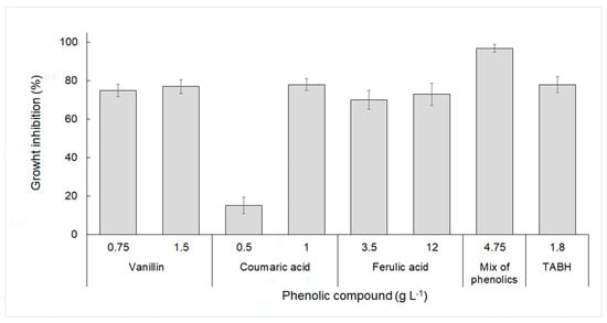 3.3. B. sacchari Growth Inhibition by Toxic Compounds Present in the TABH