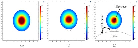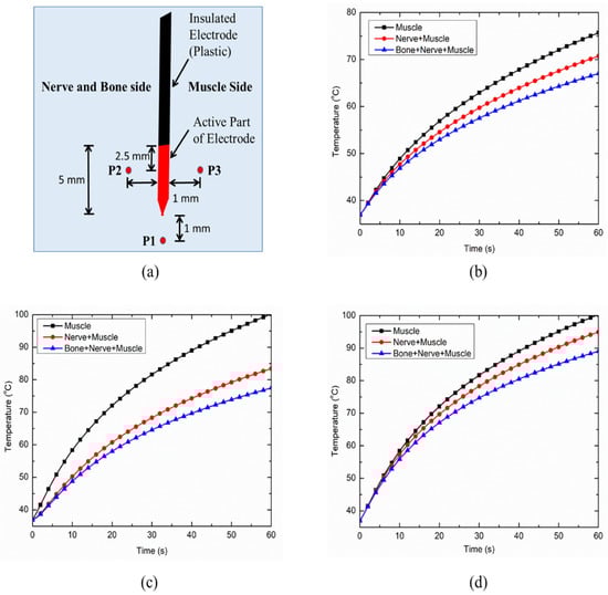 - Pérez, J.J.; Pérez-Cajaraville, J.J.; Muñoz, V.; Berjano, E. Computer modeling of electrical and thermal performance during bipolar pulsed radiofrequency for pain relief. Med Phys. 2014, 41, 071708. [Google Scholar] [CrossRef] [PubMed]