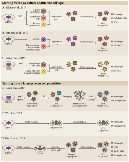 - Wu, F.; Wu, D.; Ren, Y.; Huang, Y.; Feng, B.; Zhao, N.; Zhang, T.; Chen, X.; Chen, S.; Xu, A. Generation of hepatobiliary organoids from human induced pluripotent stem cells. J. Hepatol. 2019, 70, 1145–1158. [Google Scholar] [CrossRef]