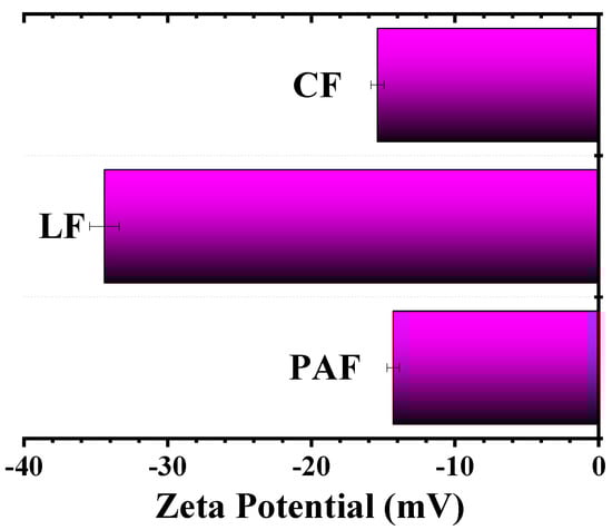 3.2.2. Zeta Potential (ξ) Results