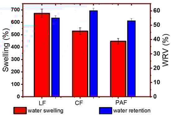 4.1.2. Gravimetric Water Swelling and Water Retention Value of Linen Fibers