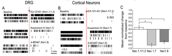 - Dib-Hajj, S.D.; Tyrrell, L.; Cummins, T.R.; Black, J.A.; Wood, P.M.; Waxman, S.G. Two tetrodotoxin-resistant sodium channels in human dorsal root ganglion neurons. FEBS Lett. 1999, 462, 117–120. [Google Scholar] [CrossRef]