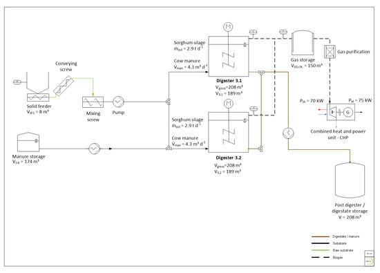 Scheme of the research biogas plant at Deutsches Biomasseforschungszentrum (DBFZ).