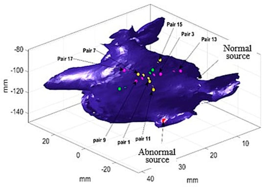 Furthermore, the most probable paths for all sixteen different catheter locations were identified, and the location of the abnormal source and the normal source are estimated. In