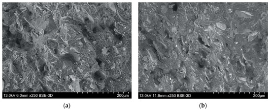 Electron scanning microscopy (SEM) was carried out using a Hitachi SU3500, Tokyo, Japan. The instrument is equipped with a backscattered electron detector (BSE), secondary electron detector (SE), and X-ray energy dispersive spectrometer (EDS). The pictures shown in this work were taken with the BSE detector at 13 kV and at 250X magnification.