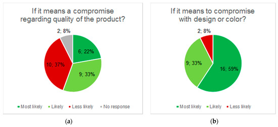 Initially, a study-specific survey was constructed to inquire about the users’ attitude for transferring production of orthotic and prosthetic devices to a more sustainable material. The users were asked how likely it was that they would choose a product produced with a biocomposite rather than fossil-based thermoplastics if it meant a compromise in design, color, or quality. The survey also asked about potential benefits or risks of using the new material, and what products the users would like to see made from this material. Outpatients visiting the department of Prosthetics and Orthotic, Örebro University Hospital, Örebro, Sweden, answered the waiting-room survey. The demonstrator was tested by a patient with a transtibial (lower limb, below-the-knee) prosthesis. The patient was 70 years old, a female with 52 years of experience using a prosthetic limb every day. The outcome was reported by the Satisfaction with Prosthesis subscales of the Trinity Amputation and Prosthesis Experience Scales, Revised (TAPES-R) [
