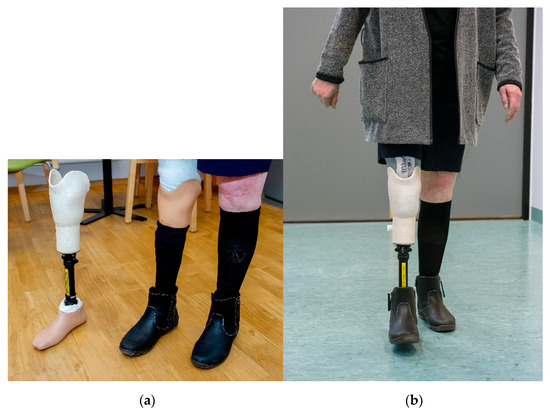 Figure 2b) was also 3D printed with similar, however, simpler geometry than the lower limb prosthesis. The socket was regarded as a building block of the lower limb prosthesis, and the simplified geometry enabled testing according to the ISO standards.