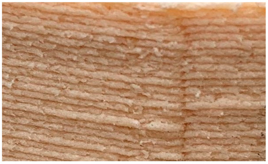 Figure 12 clearly shows the voids at the start and end positions of each layer and even between the layers. Voids and pores are of particular concern to the mechanical strength when their locations are at or close to the AMO’s surface. Variation in the effective binding area between adjacent material layers can also cause deteriorated mechanical performance. The area variation could have resulted from the dimension accuracy related to the precision of the print-head’s movement in FDM, morphology of the underlying layer, the temperature gradient between the layers, etc. Moreover, there could have been a systematic area reduction due to the spatial gradient of the 3D model, as illustrated in