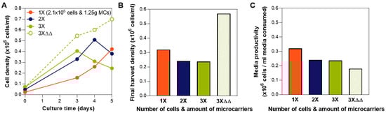 3.2. Bioreactor Seeding Strategies: Cell and Microcarrier Concentrations at Inoculation